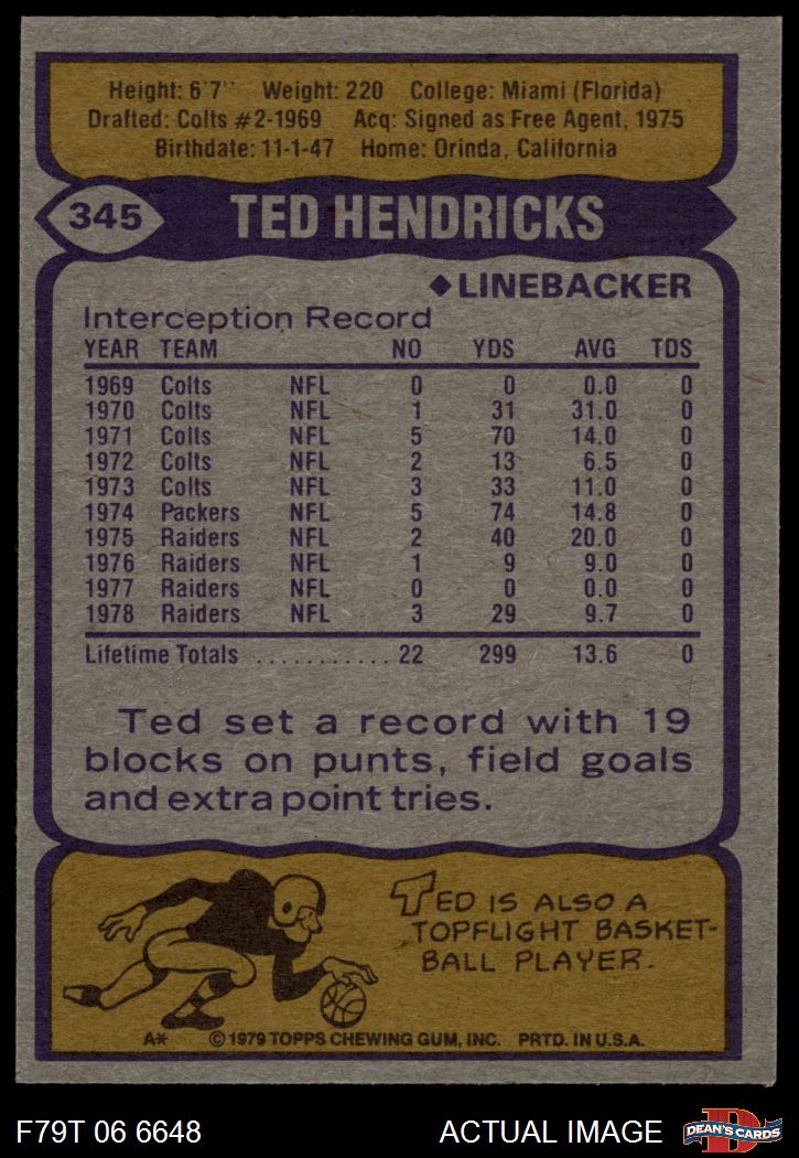 1979 Topps #345 Ted Hendricks 5 - EX