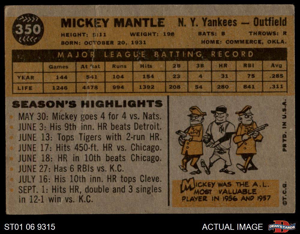 1960 Topps #350 Mickey Mantle 1.5 - FAIR