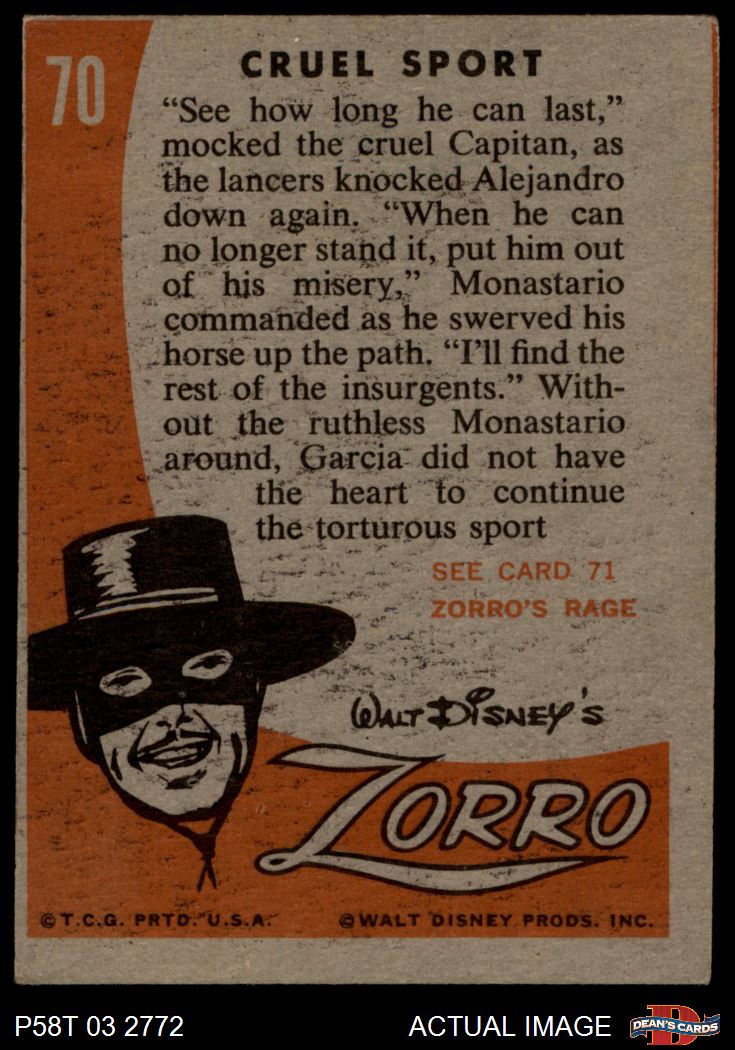 1958 Topps Zorro #70 Cruel Sport