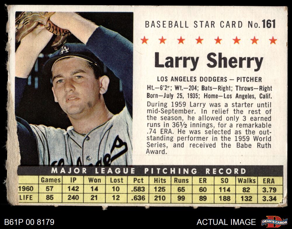 1961 Post Cereal #161 COM Larry Sherry 1 - POOR