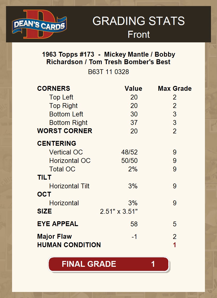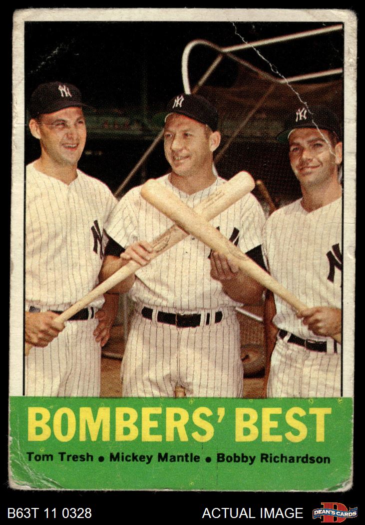 1963 Topps #173 - Mickey Mantle / Bobby Richardson / Tom Tresh Bomber's Best 1 - POOR