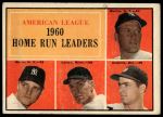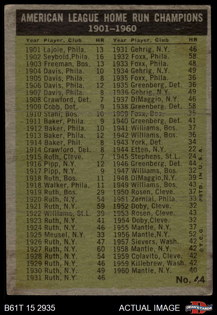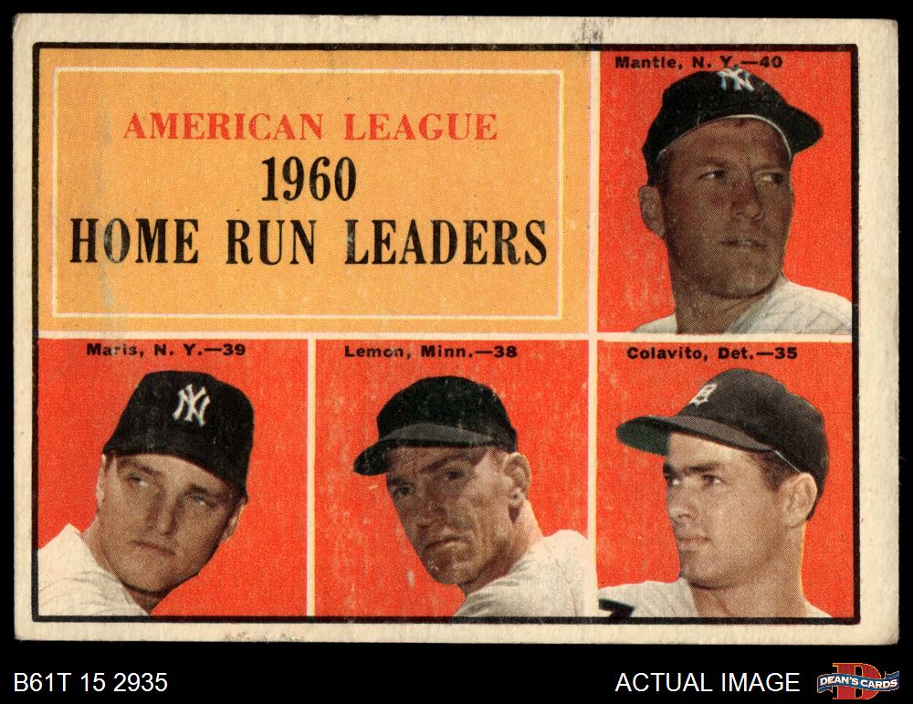 1961 Topps #44 - Mickey Mantle / Roger Maris / Rocky Colavito / Jim Lemon AL HR Leaders 2 - GOOD