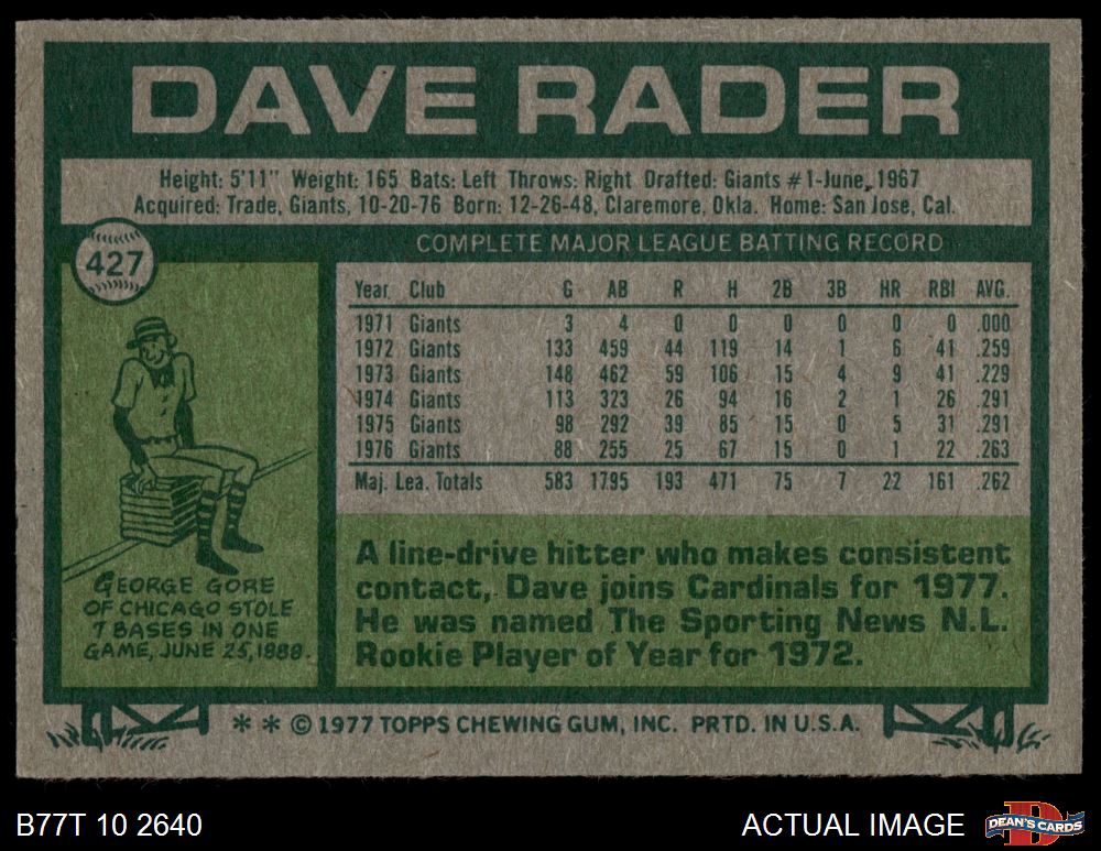 1977 Topps #427 Dave Rader 4 - VG/EX