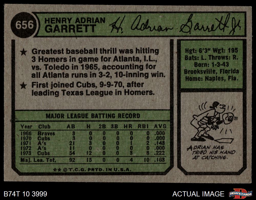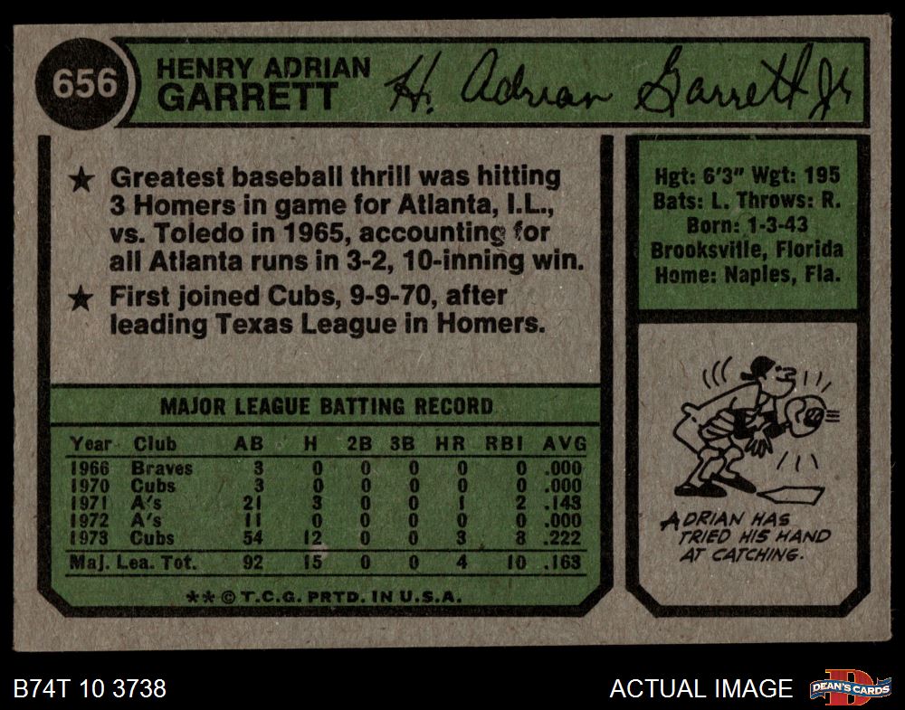 1974 Topps #656 Adrian Garrett 4 - VG/EX