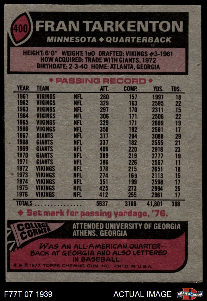 1977 Topps #400 Fran Tarkenton 4 - VG/EX