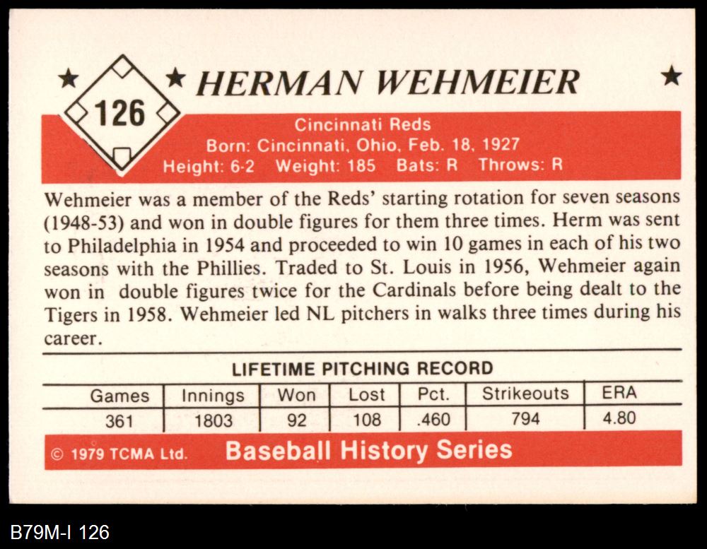 1979 TCMA The 1950's #126 Herm Wehmeier