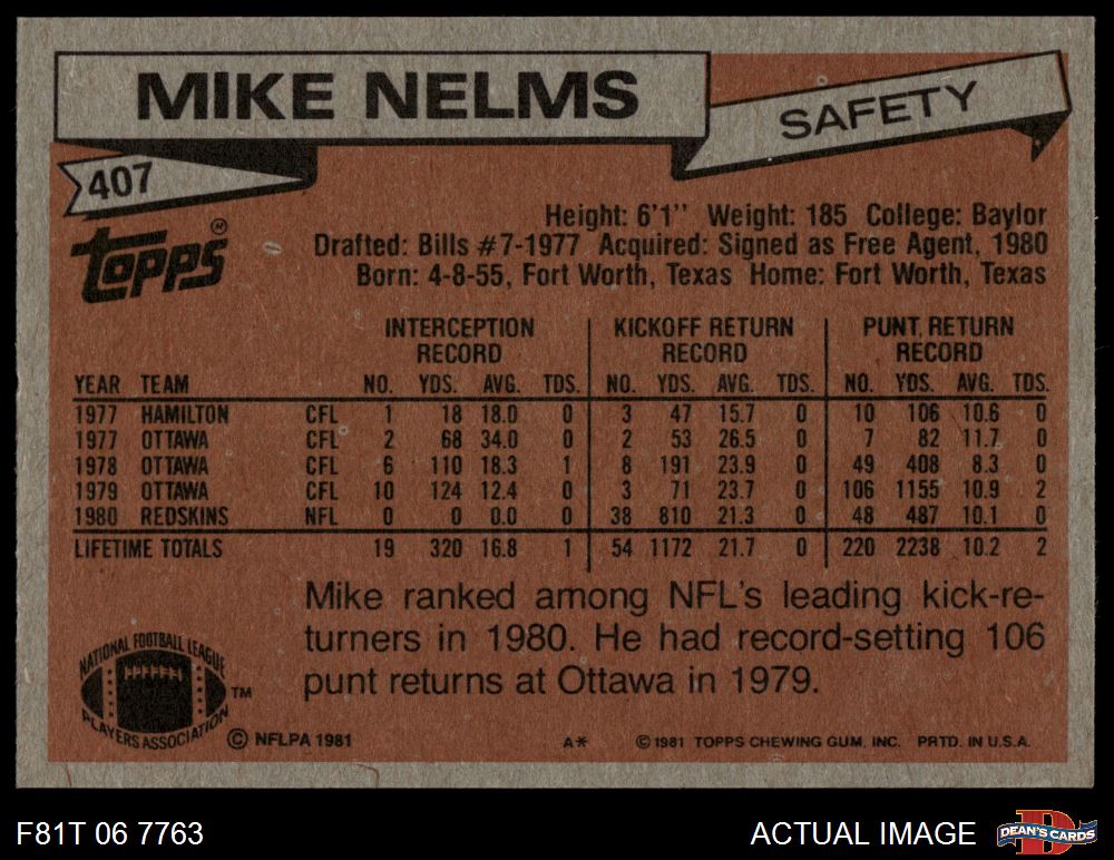 1981 Topps #407 Mike Nelms 8 - NM/MT