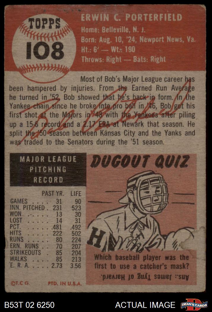 1953 Topps #108 Bob Porterfield 1.5 - FAIR