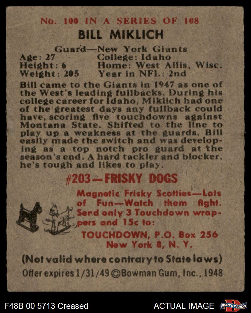 1948 Bowman #100 Bill Miklich Front Thumbnail