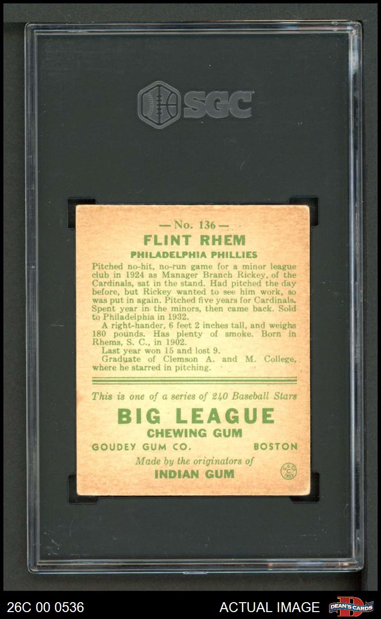 1933 Goudey #136 Flint Rhem SGC 1.5 - FAIR