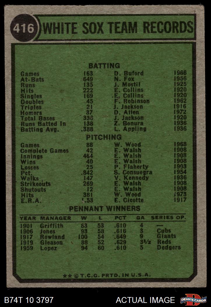 1974 Topps #416 White Sox Team 4.5 - VG/EX+