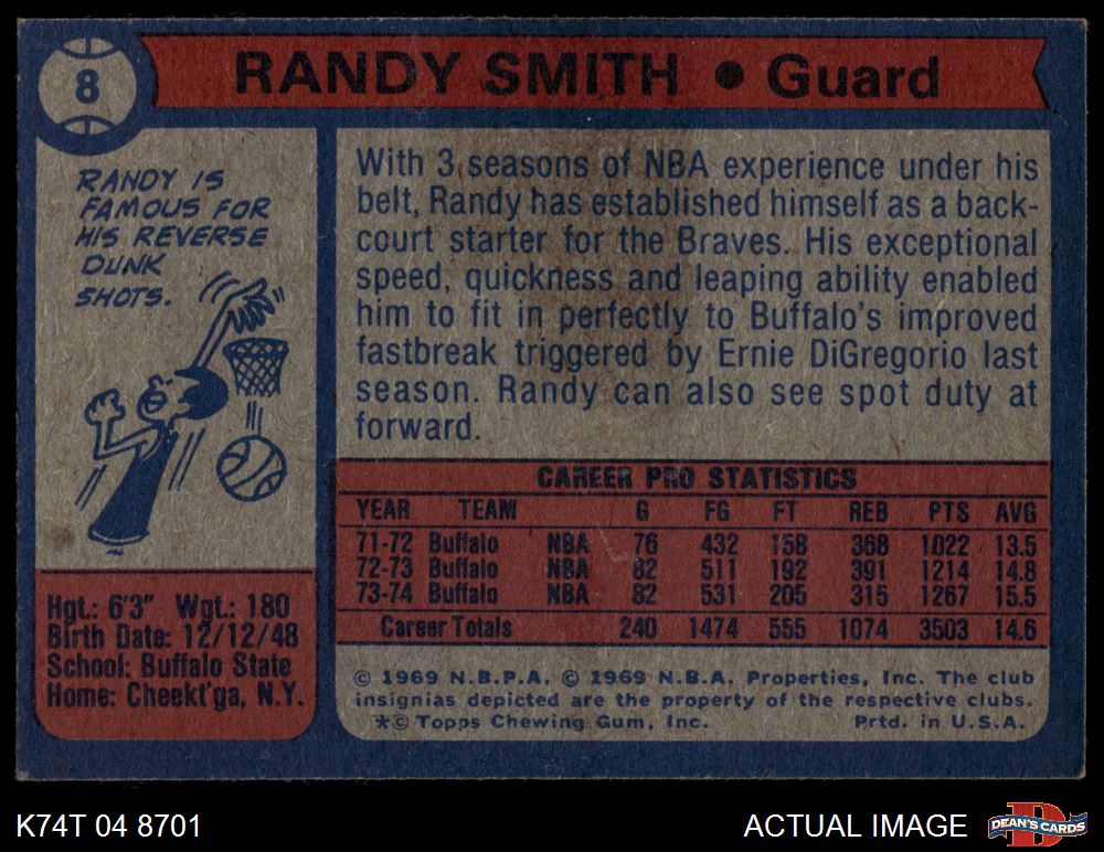 1974 Topps #8 Randy Smith 3 - VG