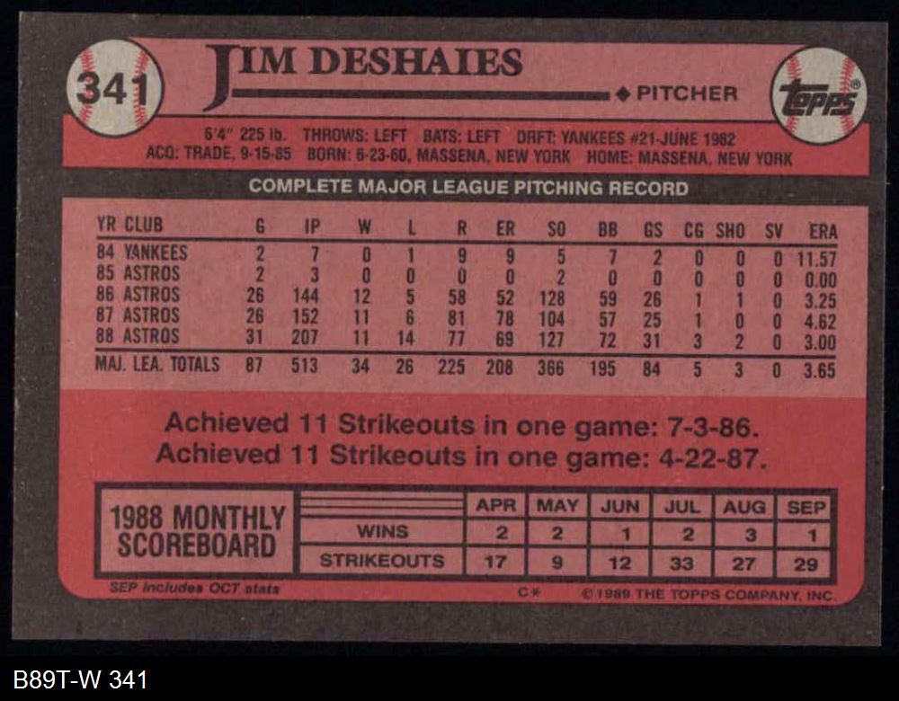 1989 Topps #341 Jim Deshaies