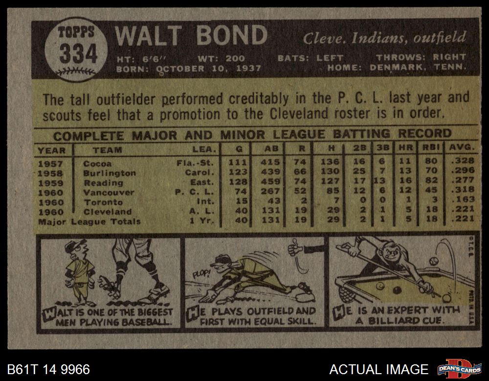1961 Topps #334 Walt Bond 4 - VG/EX