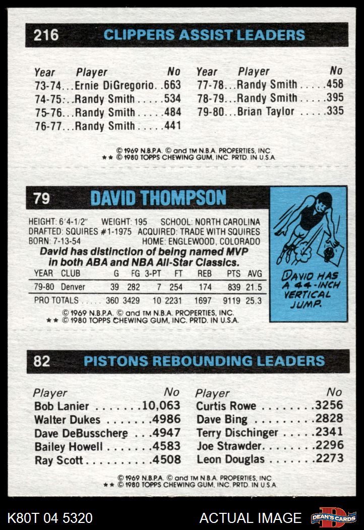 1980 Topps - Terry Tyler / David Thompson / Brian Taylor 82 / 79 / 216 6 - EX/MT