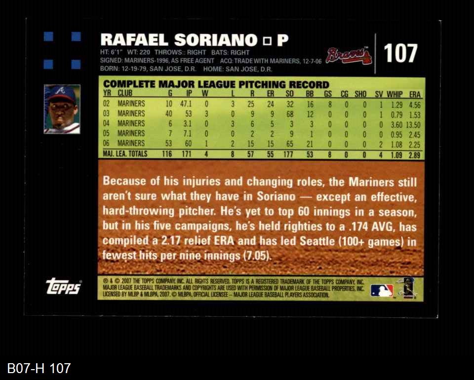 2007 Topps #107 Rafael Soriano 8 - NM/MT