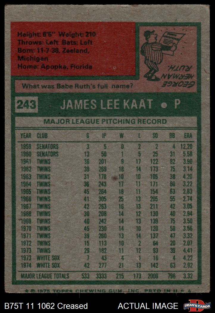 1975 Topps #243 Jim Kaat 2 - GOOD