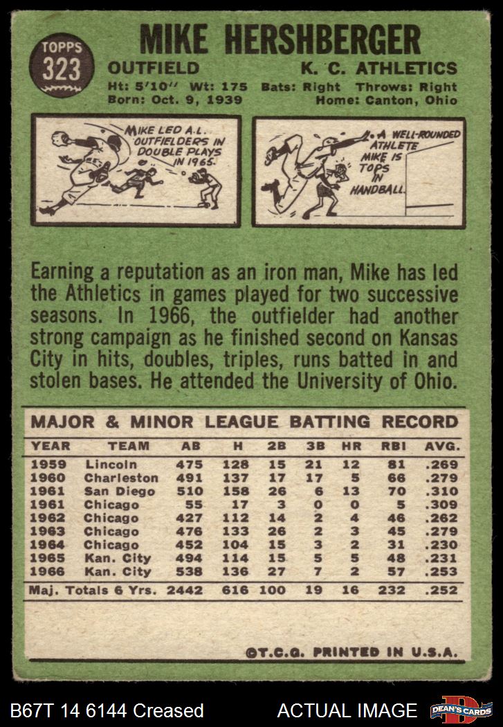 1967 Topps #323 Mike Hershberger 2 - GOOD
