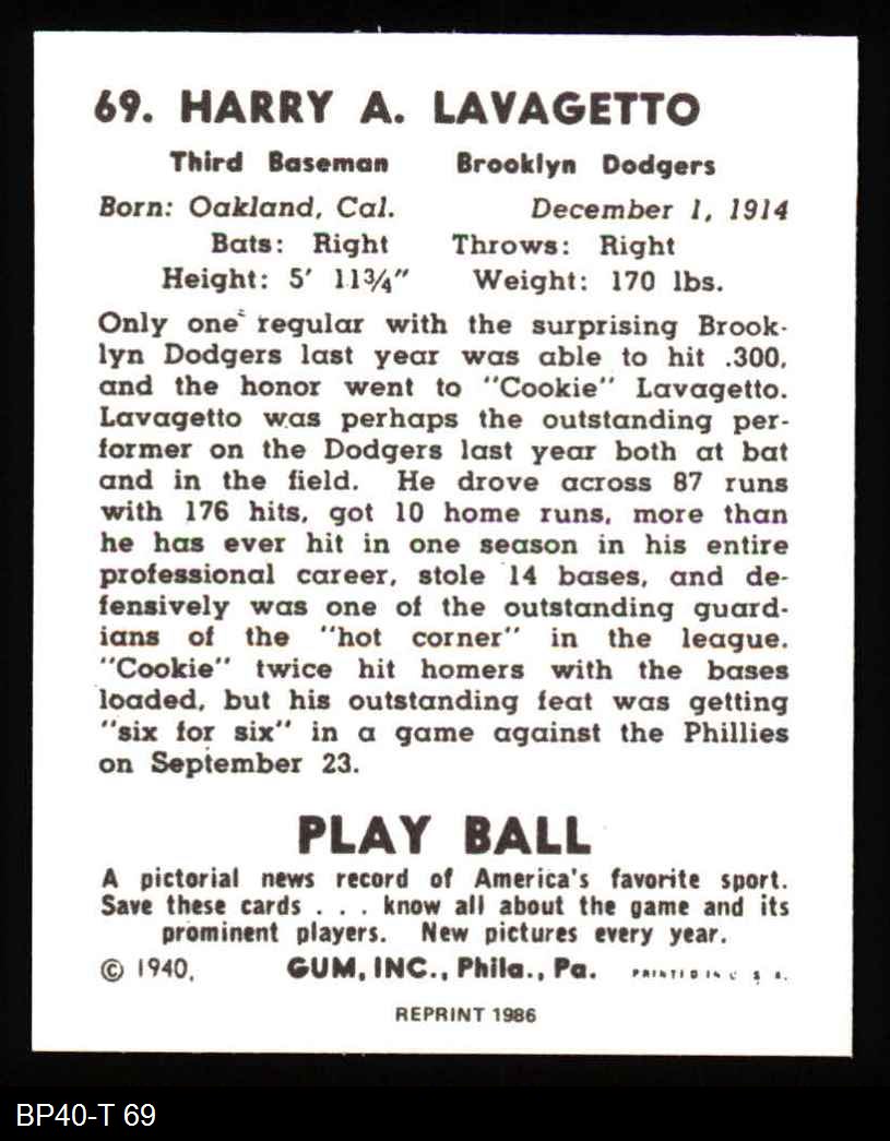 1940 Play Ball Reprint #69 Cookie Lavagetto