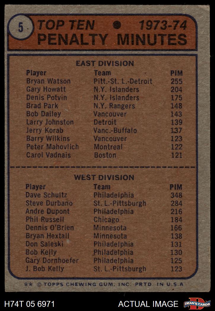 1974 Topps #5 Penalty Minute Leaders