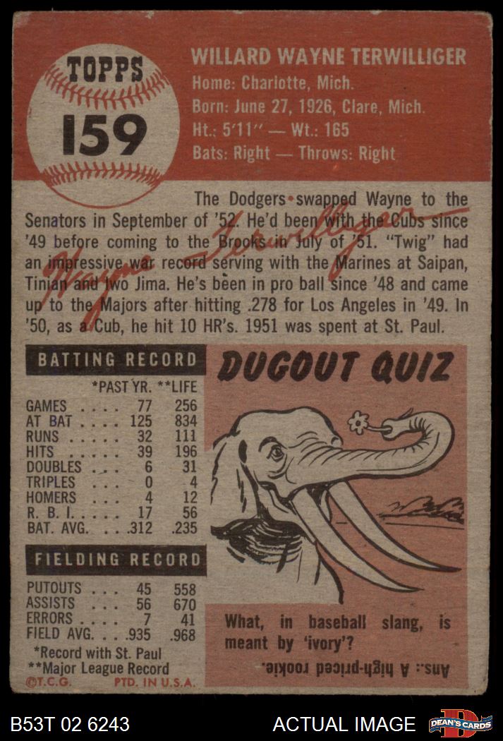 1953 Topps #159 Wayne Terwilliger 2 - GOOD