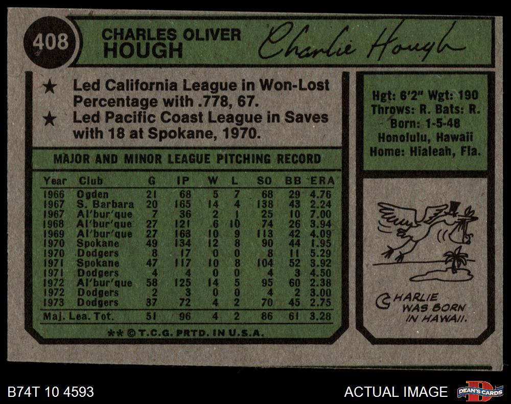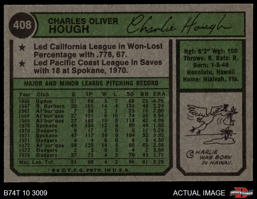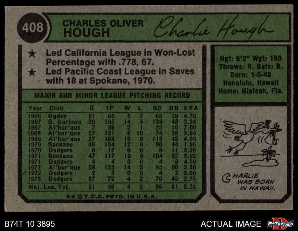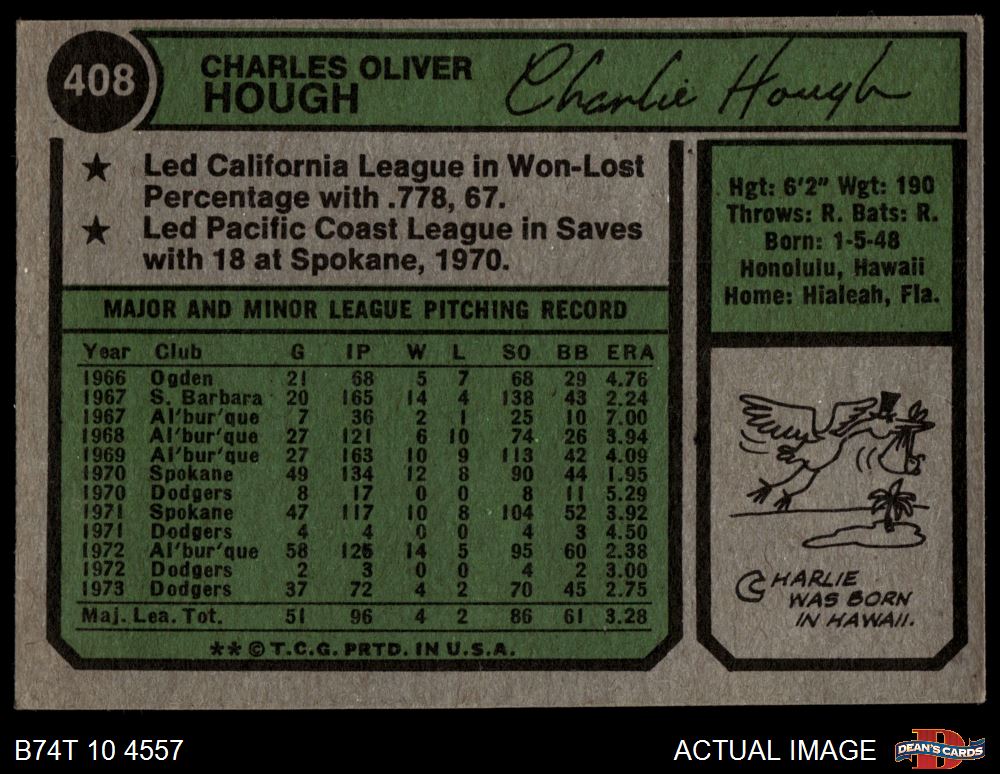 1974 Topps #408 Charlie Hough
