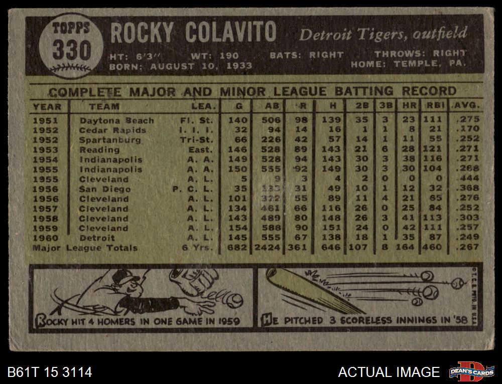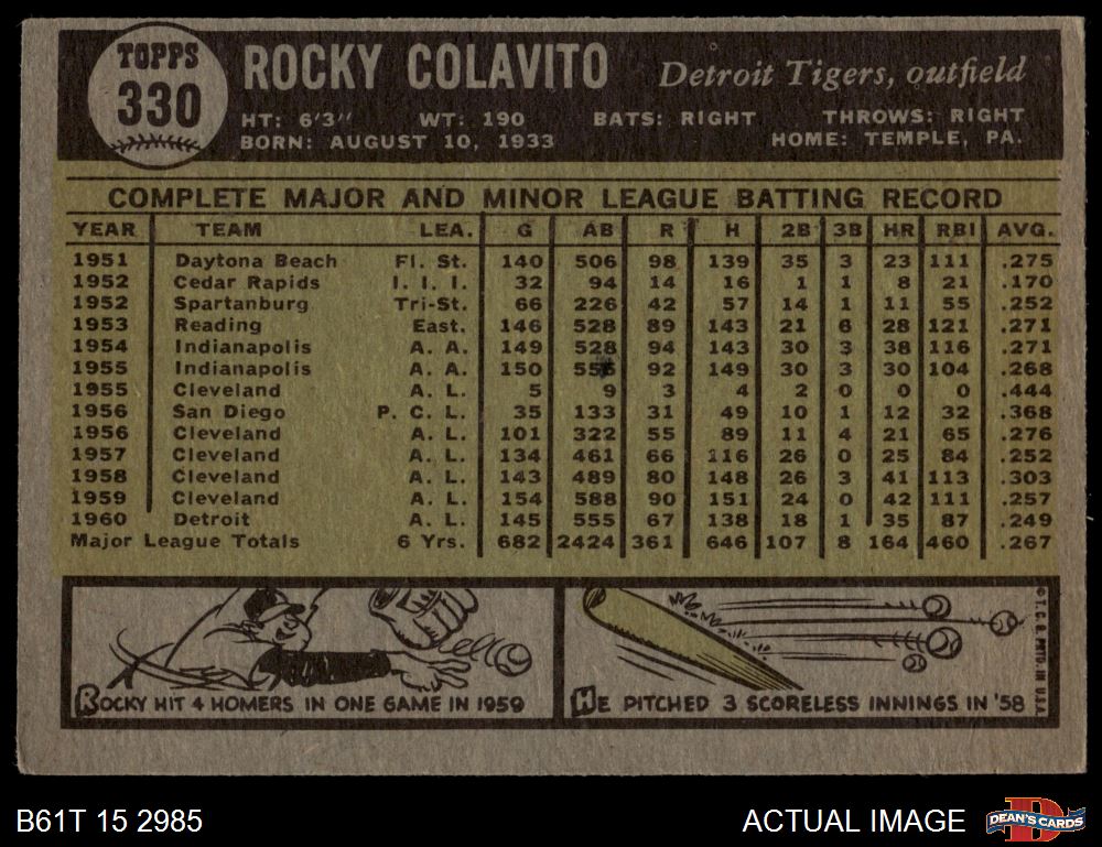 1961 Topps #330 Rocky Colavito