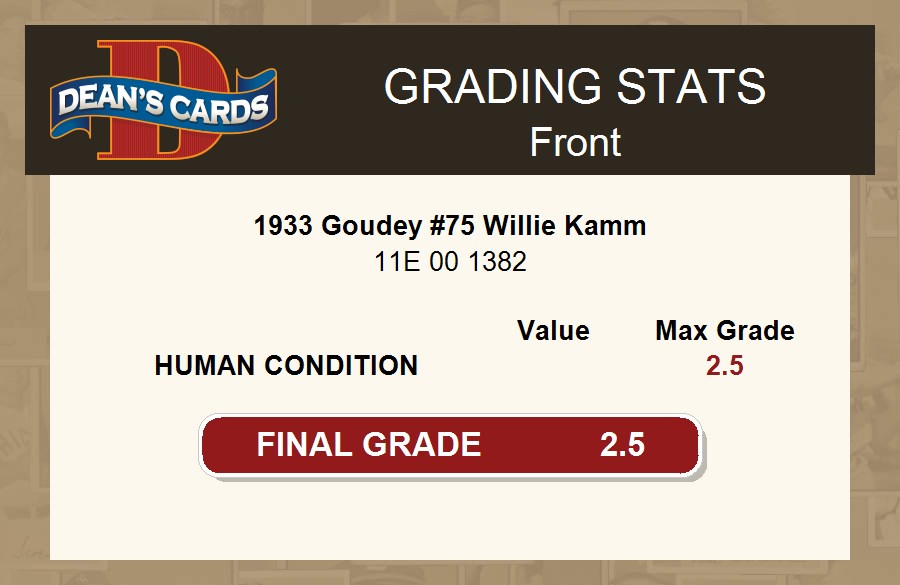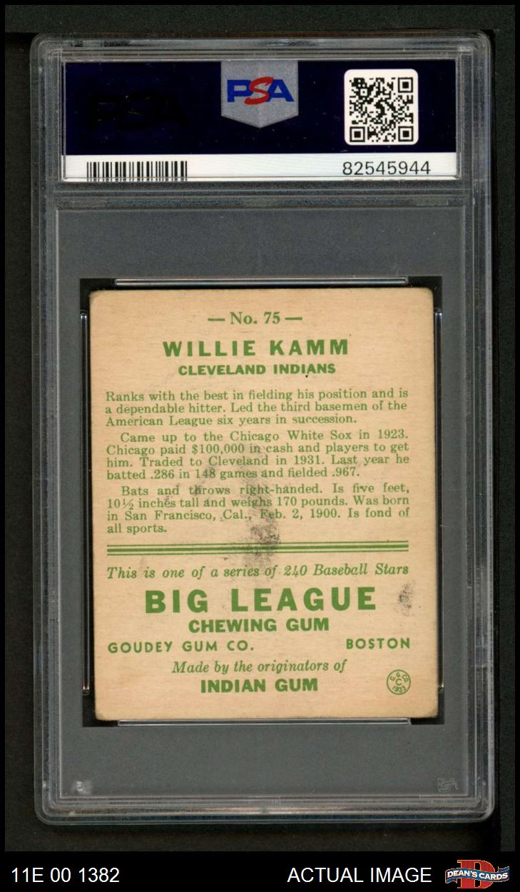 1933 Goudey #75 Willie Kamm PSA 2.5 - GD+