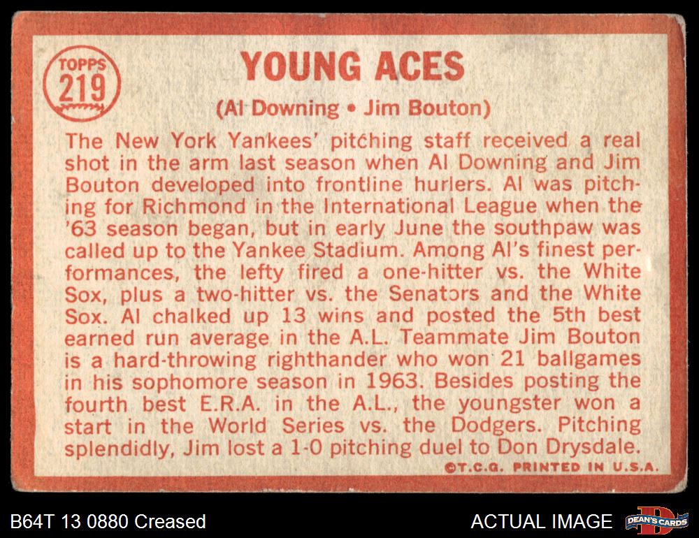 1964 Topps #219 - Al Downing / Jim Bouton Young Aces 1 - POOR