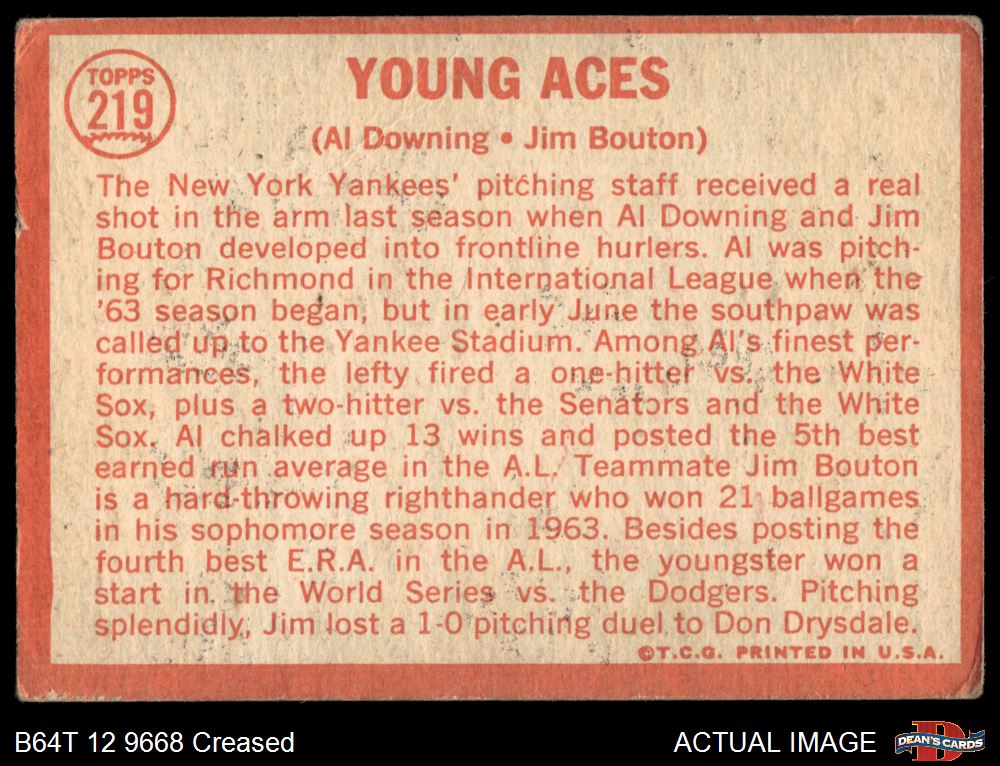 1964 Topps #219 - Al Downing / Jim Bouton Young Aces 1.5 - FAIR
