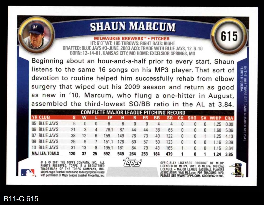 2011 Topps #615 Shaun Marcum
