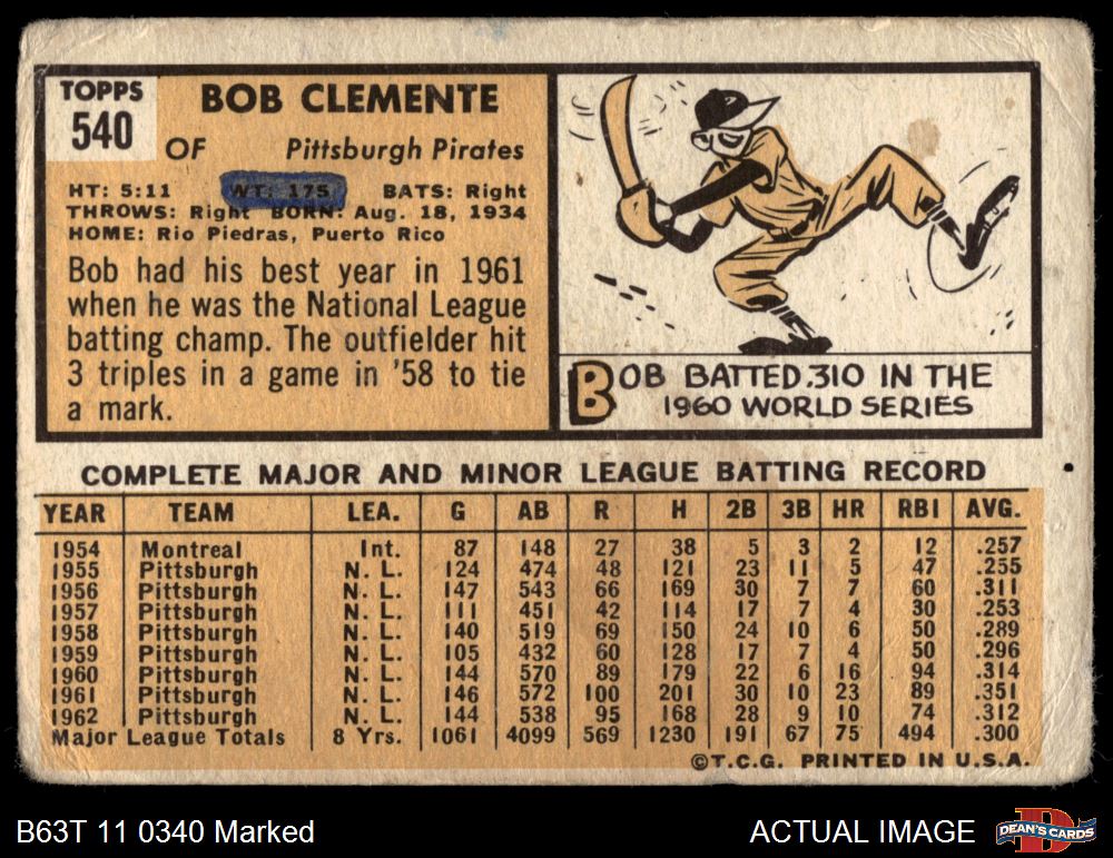 1963 Topps #540 Roberto Clemente AUTHENTIC