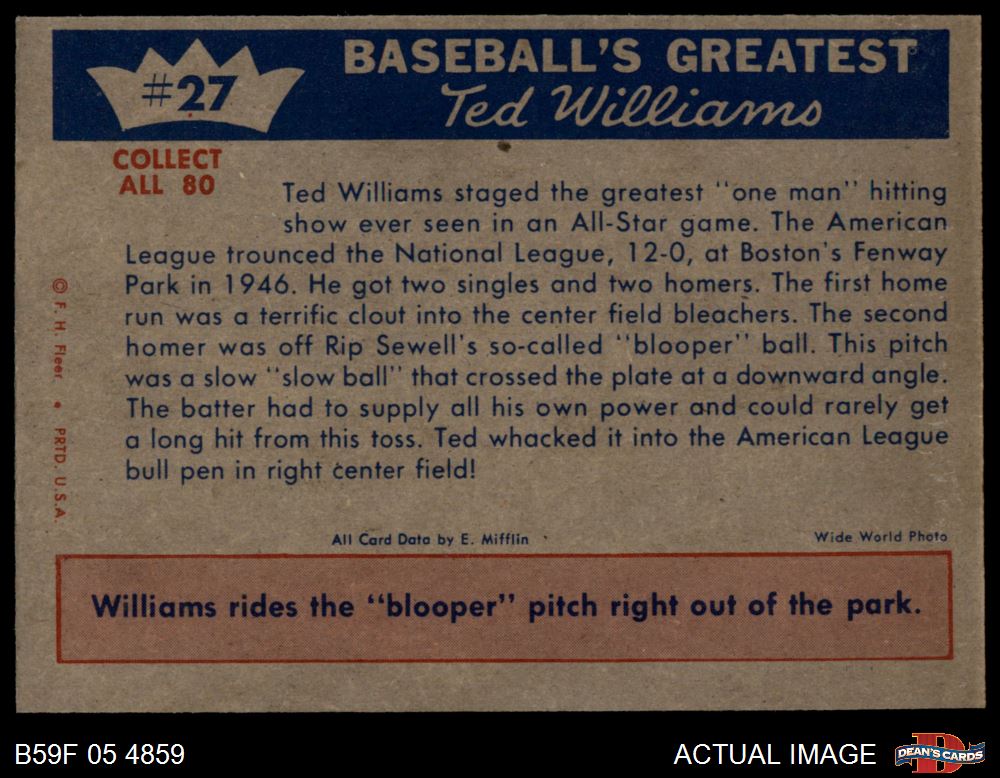 1959 Fleer #27 - Ted Williams One Man Show 5 - EX
