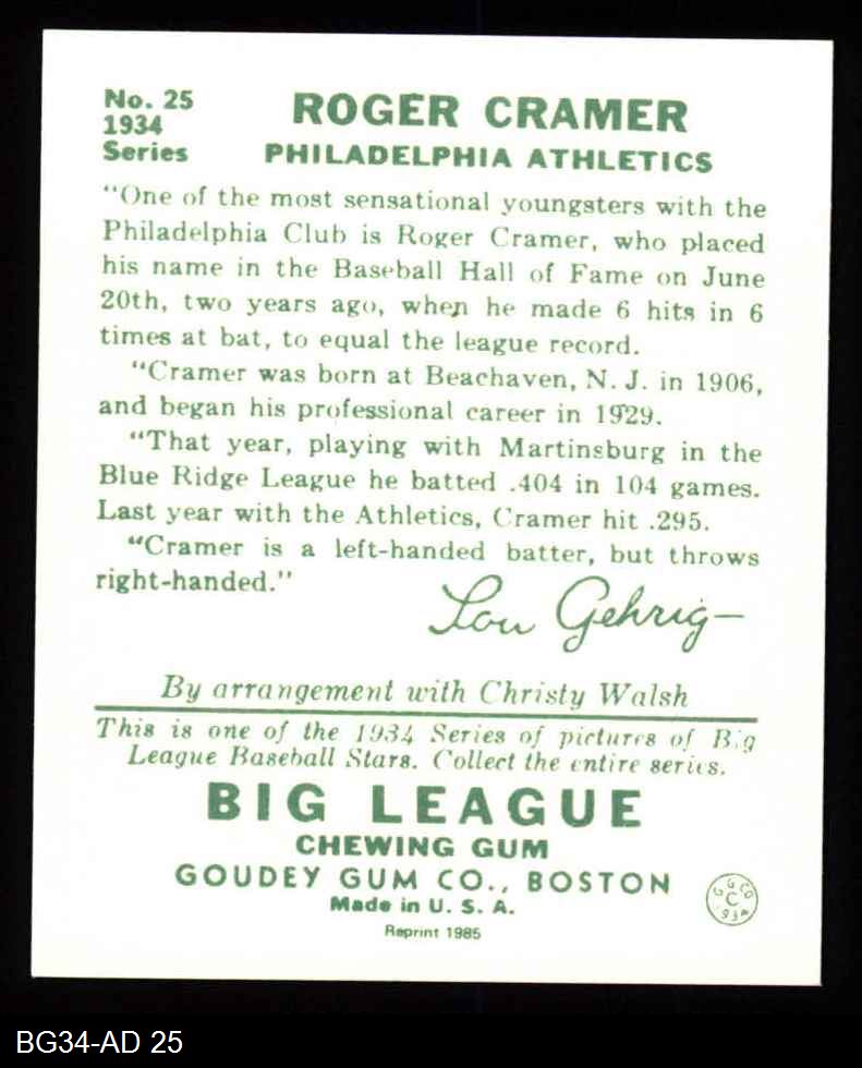 1934 Goudey Reprint (492 available)1934 Goudey Reprint Athletics (30 available)