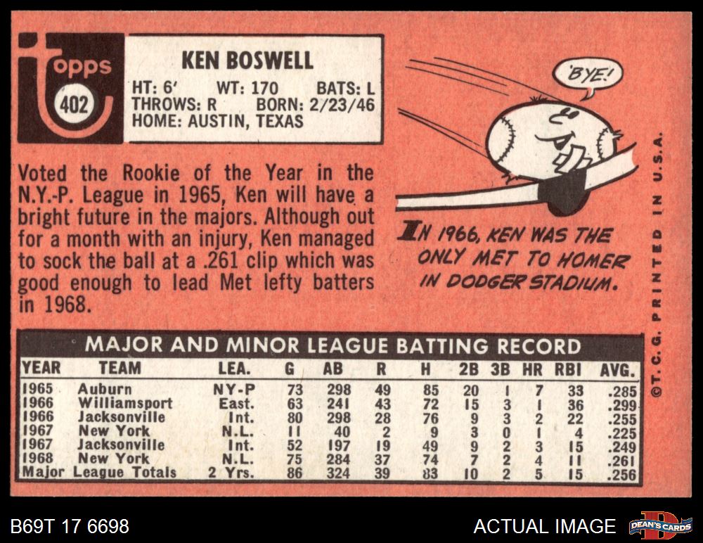 1969 Topps #402 Ken Boswell 6 - EX/MT