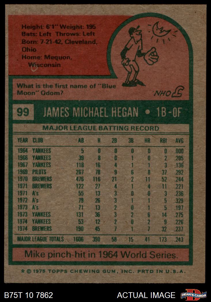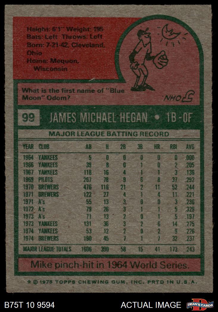 1975 Topps #99 Mike Hegan