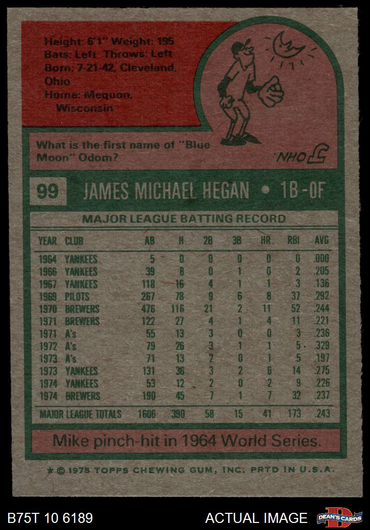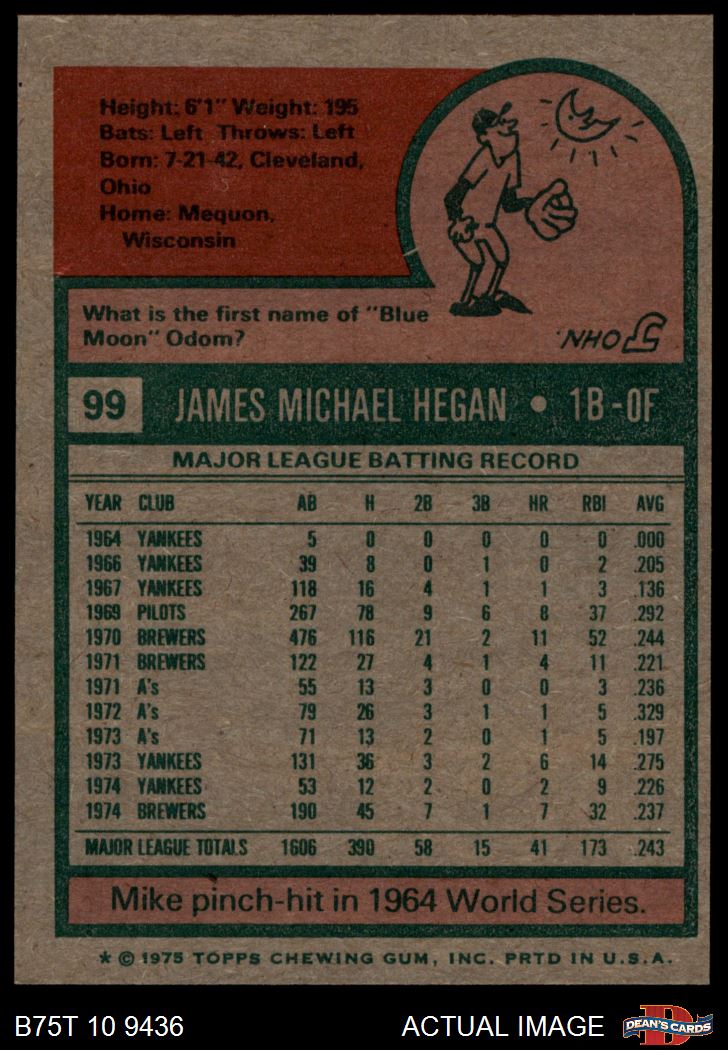 1975 Topps #99 Mike Hegan 6 - EX/MT