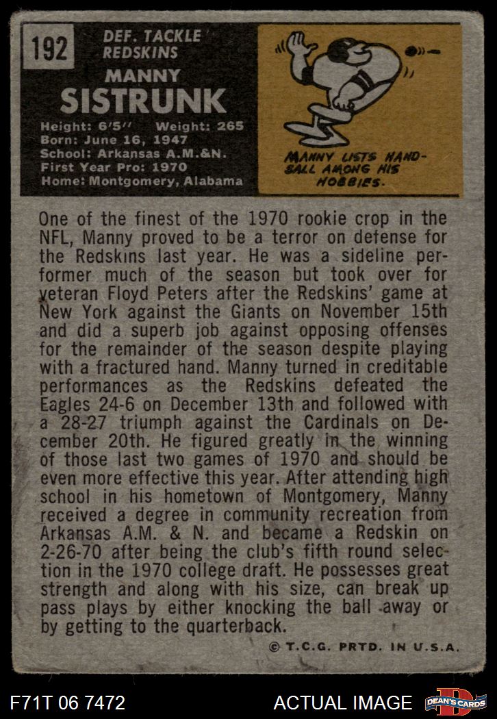 1971 Topps #192 Manny Sistrunk 2 - GOOD