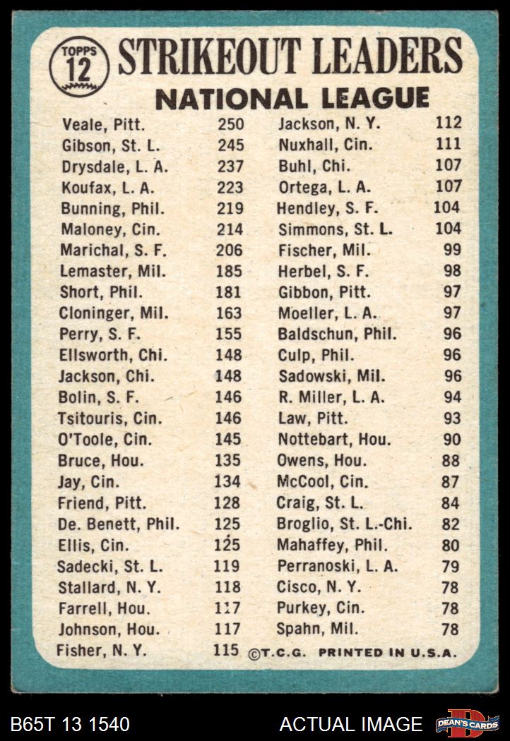 1965 Topps #12 - Don Drysdale / Bob Gibson / Bob Veale NL Strikeout Leaders 3.5 - VG+