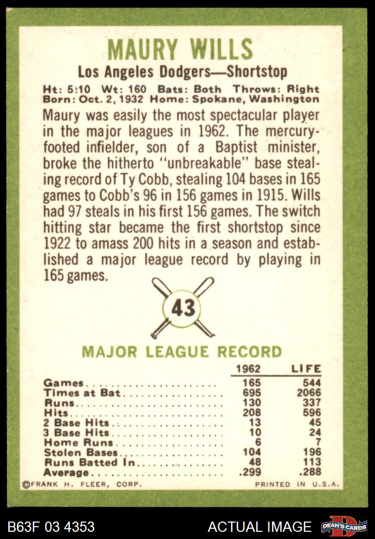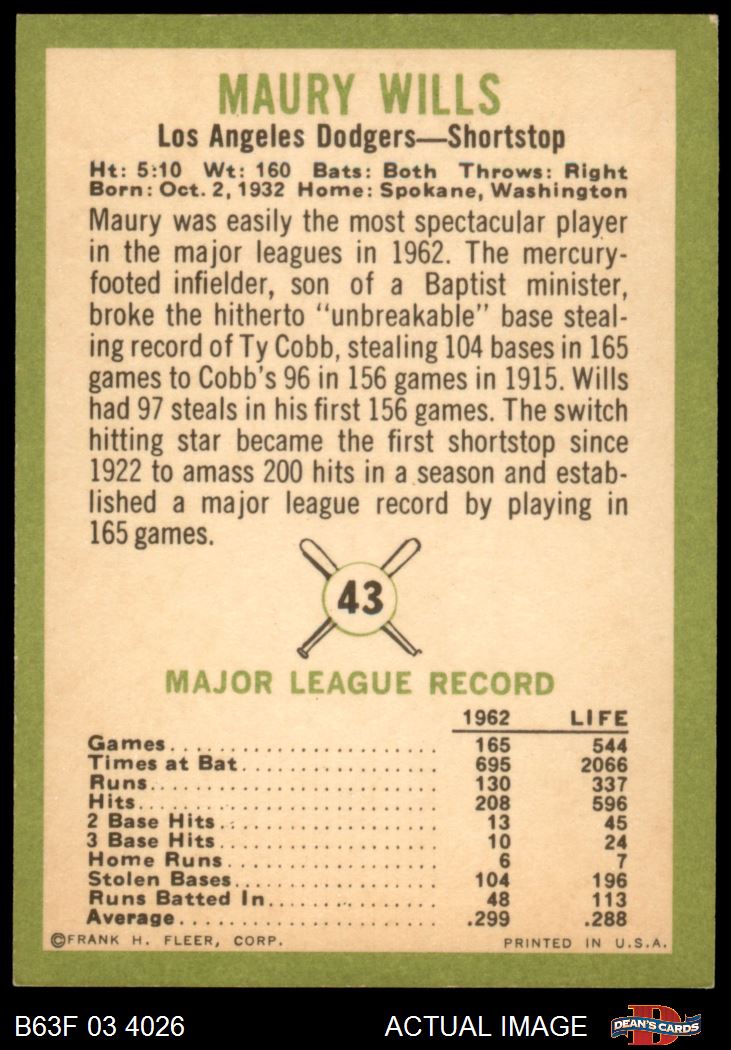 1963 Fleer #43 Maury Wills 6 - EX/MT