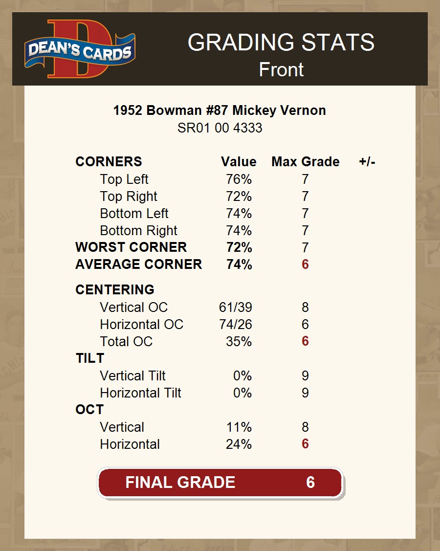 1952 Bowman #87 Mickey Vernon