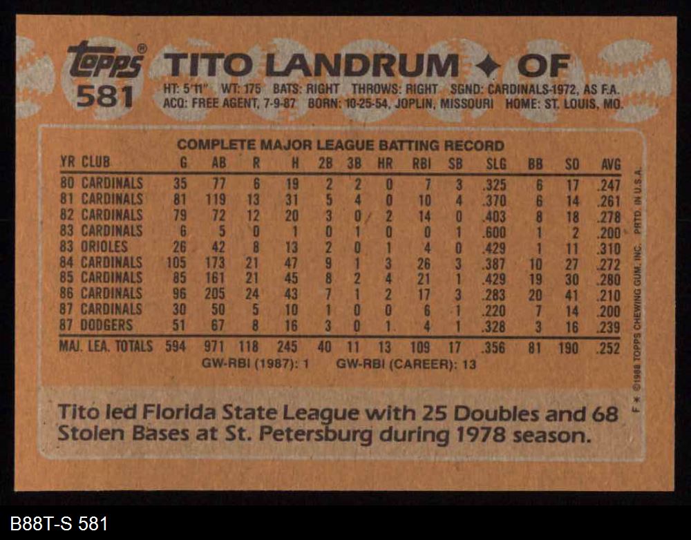 1988 Topps #581 Tito Landrum