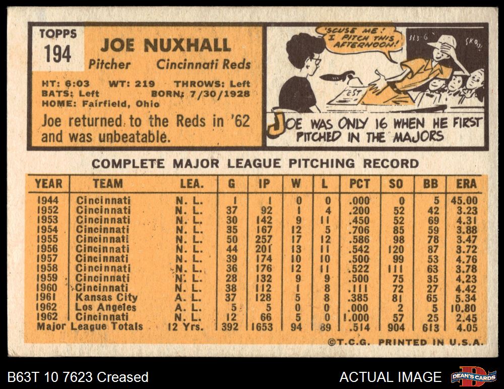 1963 Topps #194 Joe Nuxhall 3 - VG