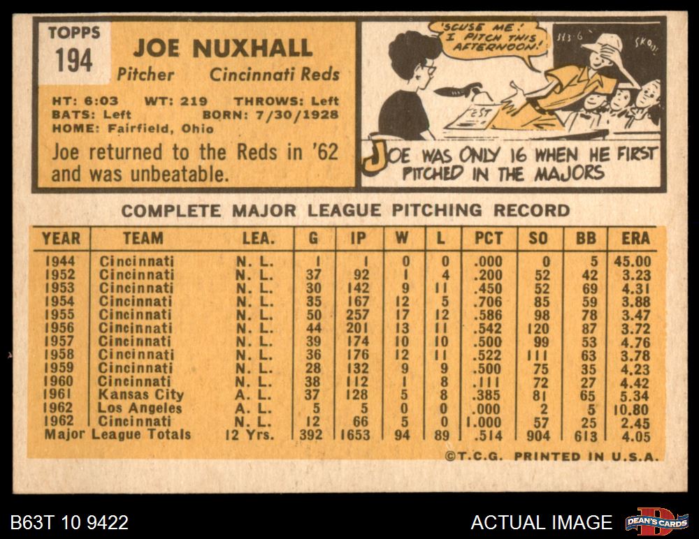 1963 Topps #194 Joe Nuxhall 4 - VG/EX