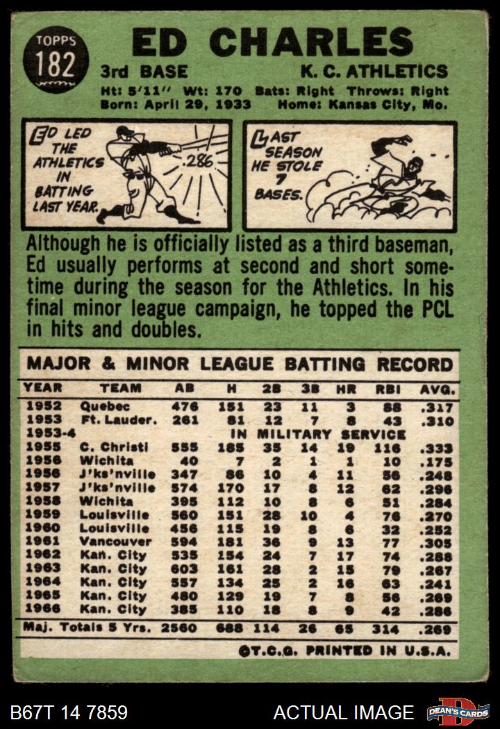1967 Topps #182 GRN Ed Charles 1.5 - FAIR