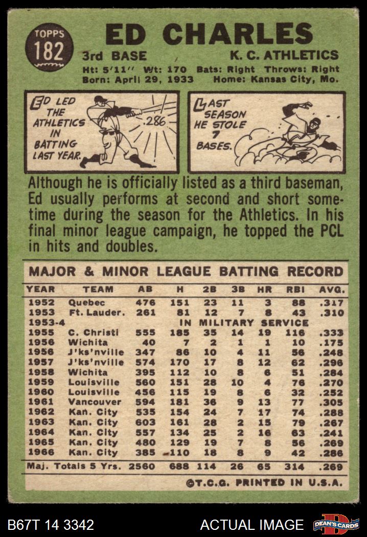 1967 Topps #182 GRN Ed Charles 3 - VG