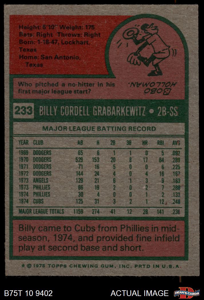 1975 Topps #233 Billy Grabarkewitz 5.5 - EX+