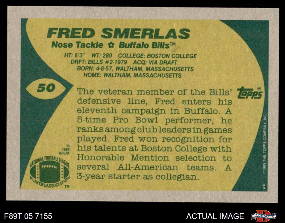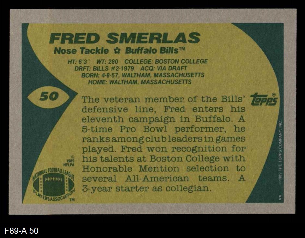 1989 Topps #50 Fred Smerlas 8 - NM/MT