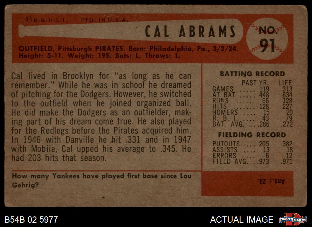 1954 Bowman #91 Cal Abrams 2 - GOOD