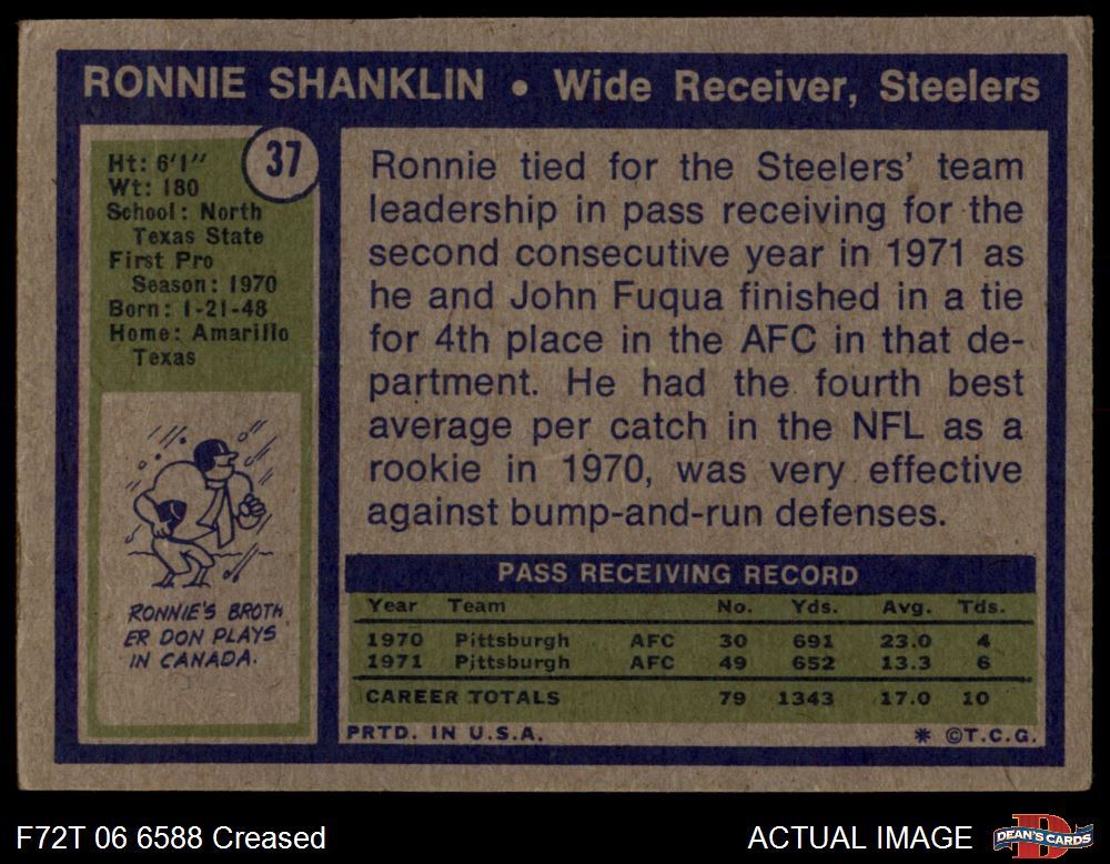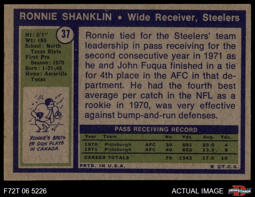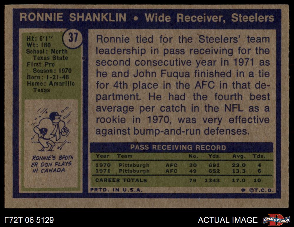 1972 Topps #37 Ronnie Shanklin Front Thumbnail